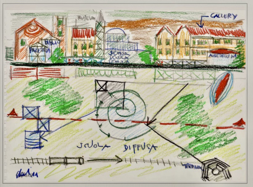 Concretamente si tratta di ridurre l’idea di scuola come edificio a una base, una tana, un punto di partenza e di ritorno, dove riunirsi per partire, in piccole squadre, e poi rivedersi per condividere, discutere e arricchire;
