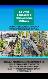 “In ogni città esiste un patrimonio enorme non utilizzato di saperi ed esperienze da mettere in comune con bambini e bambine, ragazzi e ragazze. È quello di tante botteghe e laboratori, musei e piccole gallerie, teatri tradizionali o di piazza, luoghi di musica e arte, biblioteche e librerie… L’educazione diffusa può aiutare a ripensare l’idea di apprendimento, favorire la partecipazione di cittadini al bene comune, ma anche fermare l’espulsione dei cittadini dai centri storici. “Gli educatori, i politici liberi e gli architetti illuminati dovrebbero solidalmente avviare questo percorso partendo magari da piccole realtà ed esperienze per estendere l’idea alle grandi città e alle aree metropolitane…”
