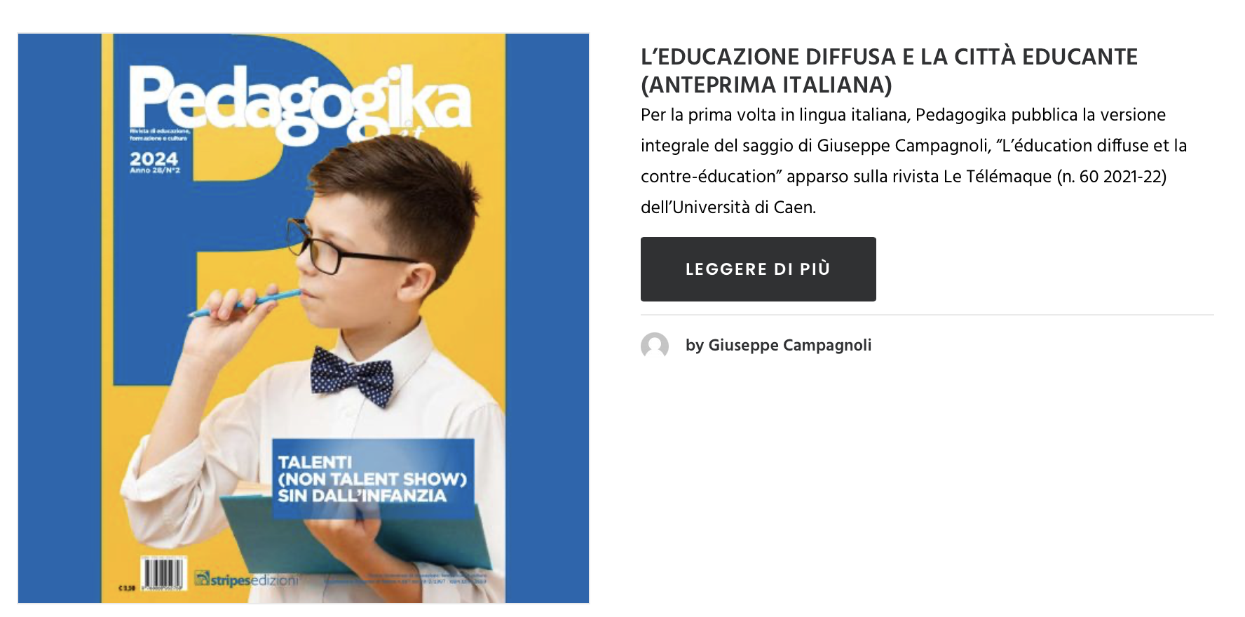 Qui l’articolo completo in italiano: https://www.pedagogia.it/blog/2024/02/23/leducazione-diffusa-e-la-citta-educante-anteprima-italiana/campagnoli_2024_2_le-telemaque/
