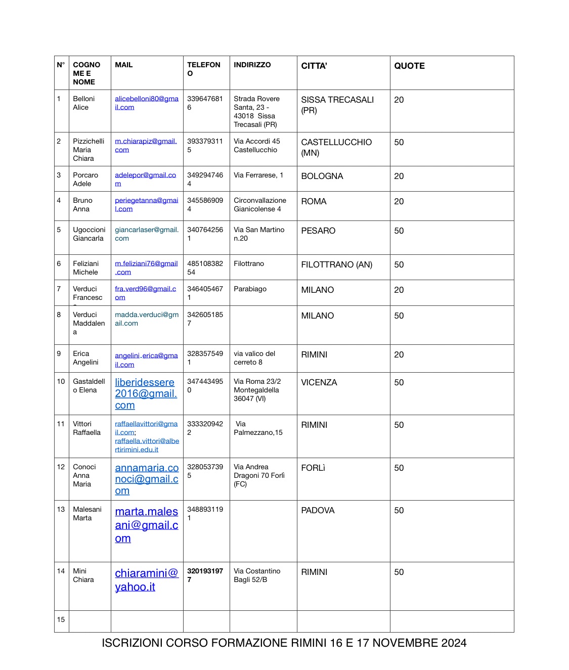 É STATO RAGGIUNTO IL NUMERO MASSIMO DI ISCRIZIONI EFFETTIVE. LA CAMPAGNA DI ADESIONE È SOSPESA. VERRÀ RIAPERTA IN CASO DI NUOVI POSTI LIBERI. CHI FOSSE GIÀ PREISCRITTO ALLA DATA ODIERNA SENZA AVER PERFEZIONATO L’ADESIONE CON IL VERSAMENTO DELLA QUOTA FARÀ PARTE DI UN ELENCO PRIORITARIO PER EVENTUALI SOSTITUZIONI IN CASO DI RINUNCE O PER NUOVE EVENTUALI EDIZIONI DEL CORSO.LA QUOTA DI ISCRIZIONE AL SEMINARIO COMPRENDE PER STATUTO ANCHE QUELLA DI ADESIONE ALL’ASSOCIAZIONE.